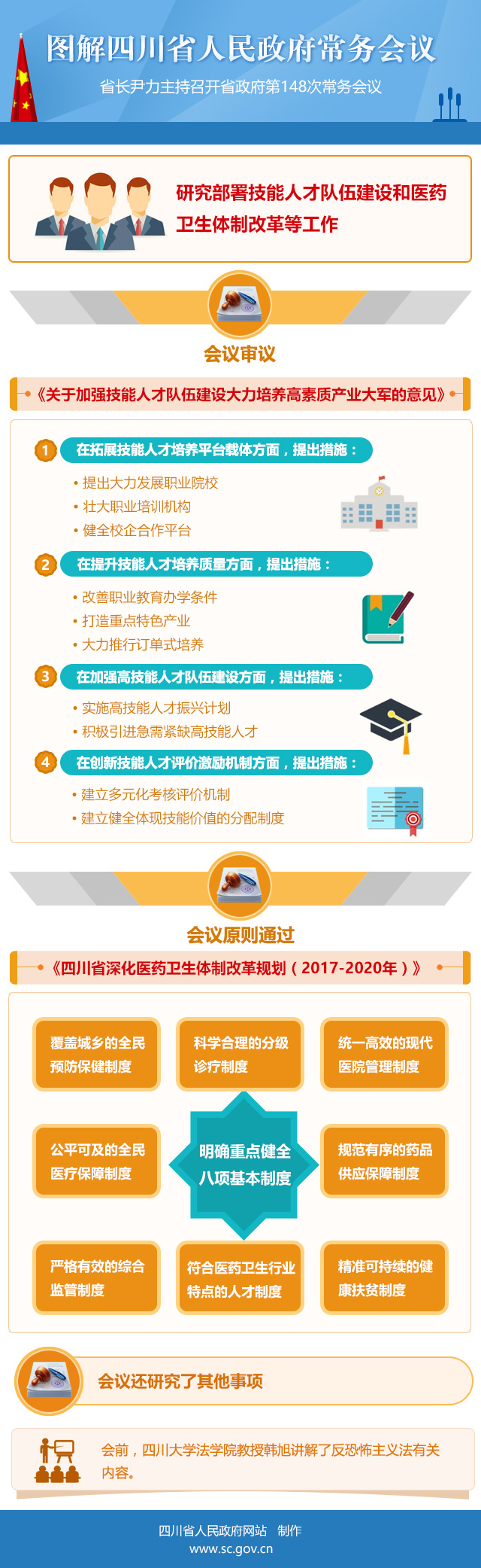 会议原则通过《四川省深化医药卫生体制改革规划(2017-2020年)》,明确重点健全八项基本制度,包括覆盖城乡的全民预防保健制度、科学合理的分级诊疗制度、统一高效的现代医院管理制度、公平可及的全民医疗保障制度、规范有序的药品供应保障制度、严格有效的综合监管制度、符合医药卫生行业特点的人才制度、精准可持续的健康扶贫制度等。